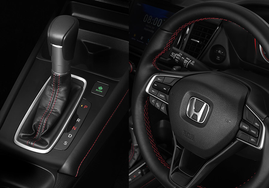 Honda City Hatchback RS juga dilengkapi dengan 8 buah speaker yang ada pada bagian depan dan belakang kabin serta Auto A/C with Red Illumination. Fitur canggih lainnya pun telah disematkan pada mobil ini seperti fitur Multi-Angle Rear View Camera yang dapat menampilkan 3 tampilan: Normal View, Wide View, and Top View untuk membantu pengguna saat memarkir mobilnya.