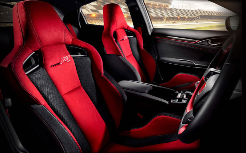 Menghadirkan nuansa sporty pada interiornya, New Honda Civic Type R disematkan Type R Sport Seats with Red Suede Style Fabric serta roda kemudi dengan material baru yakni New Alcantara Steering Material dengan aksen merah. Terdapat pula New Wireless Charging di kabin depan pada konsol tengah yang dipadukan dengan desain baru pada Shift Knob. Sedangkan pada bagian dashboard, terdapat garis halus berwarna merah yang menyambung sampai ke panel pintu samping.